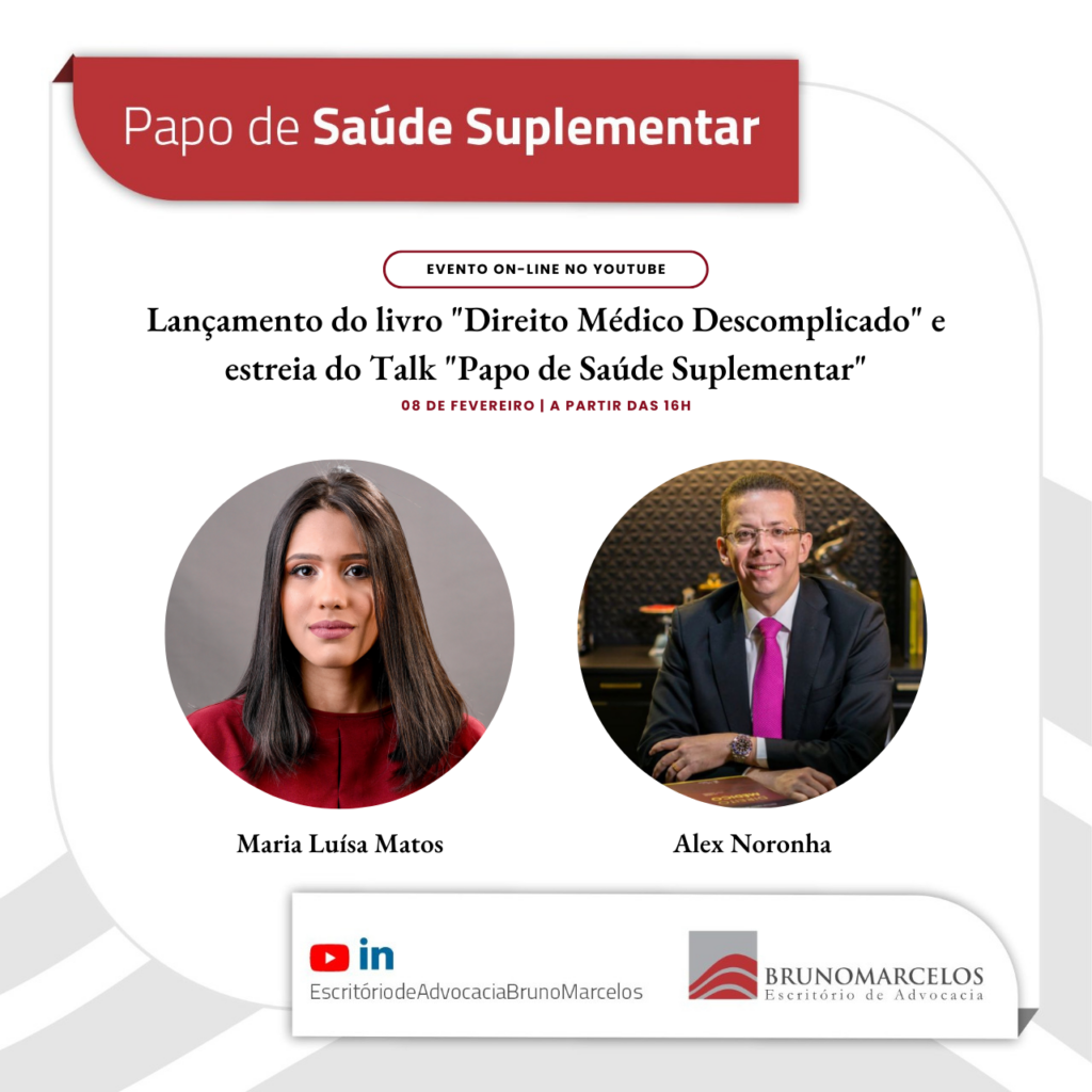 Em nosso episódio de estreia, teremos o lançamento do livro “Direito Médico Descomplicado” com a presença dos dois autores, nossa sócia Maria Luísa Matos e seu colega, o advogado Dr. Alex Noronha Monte.